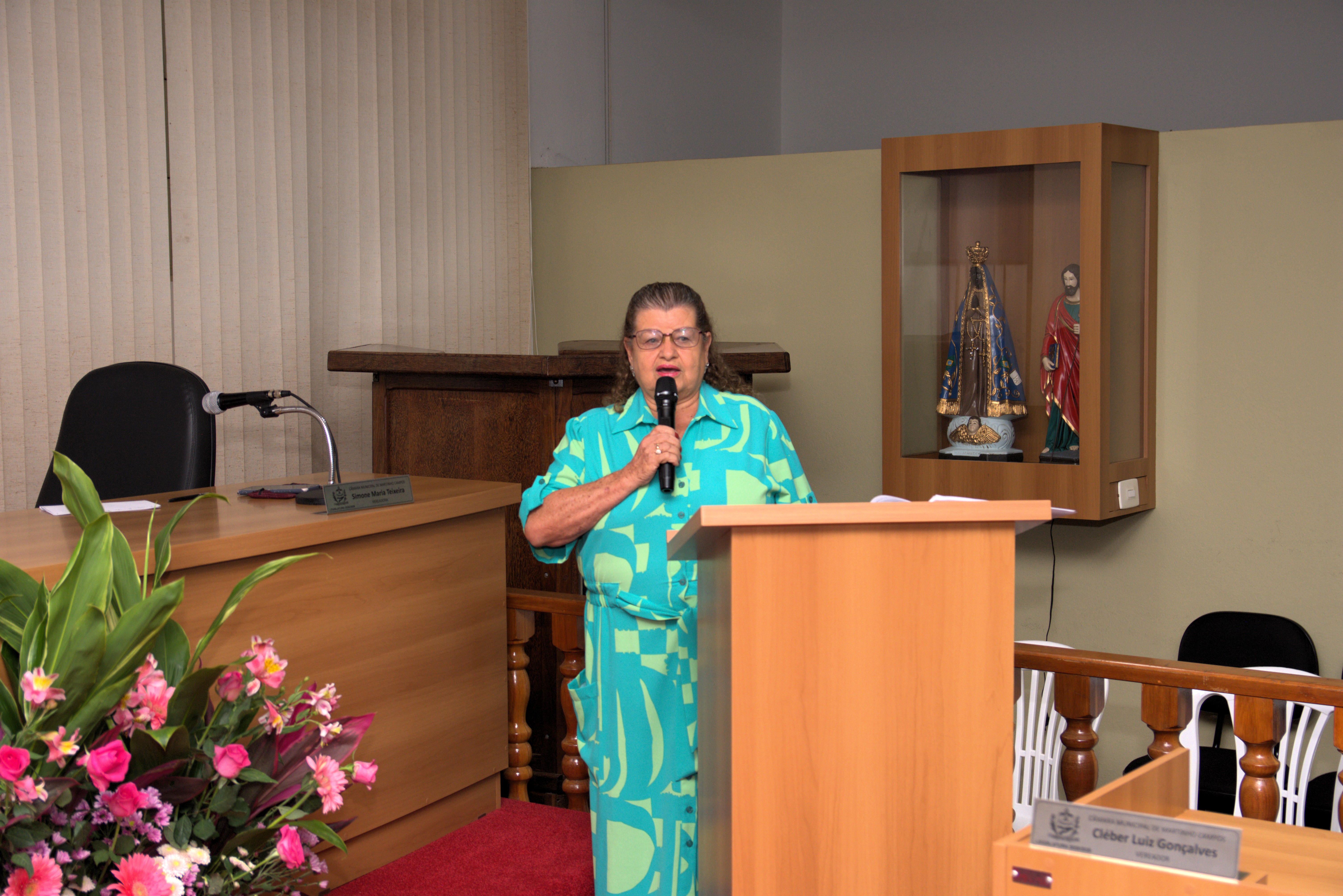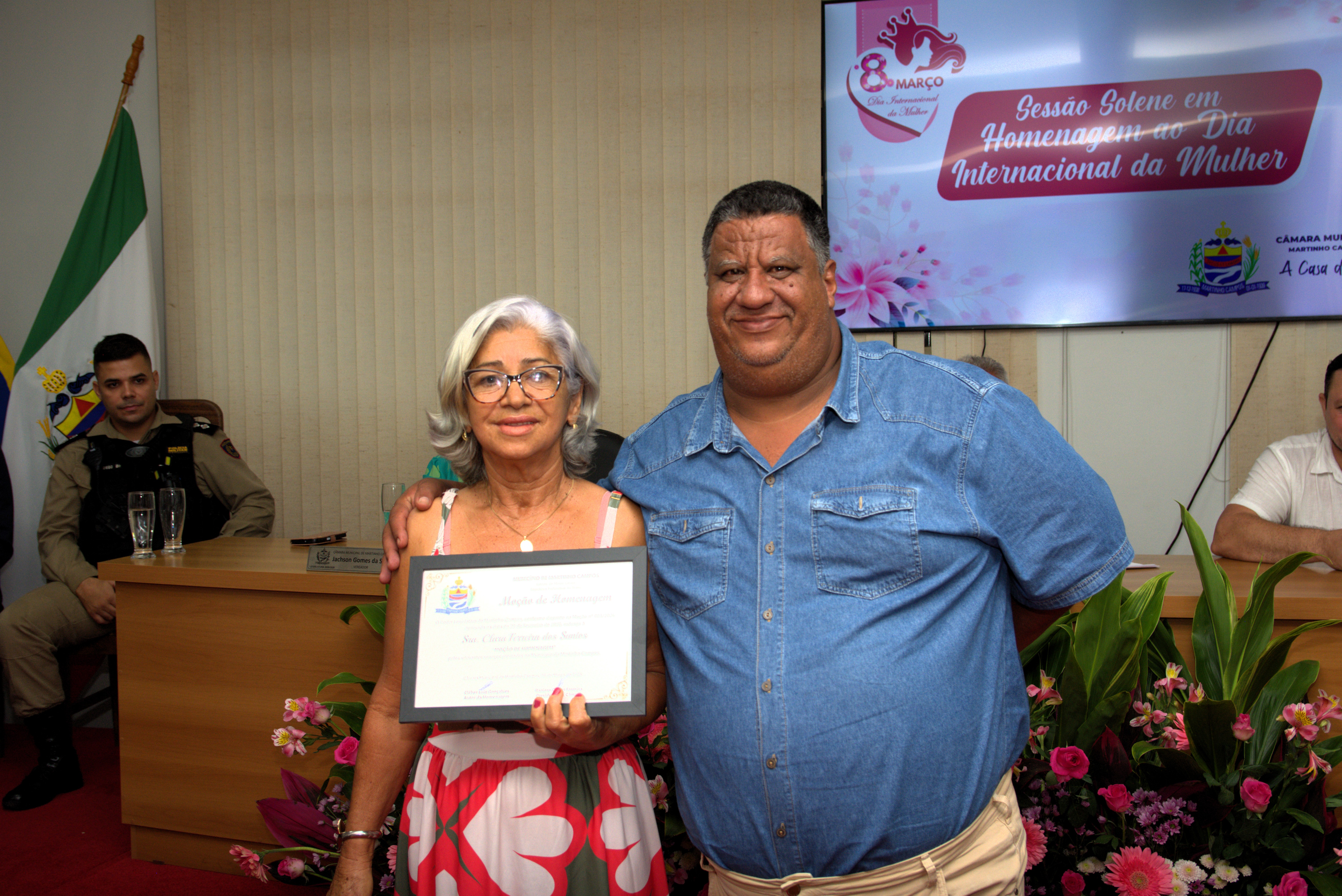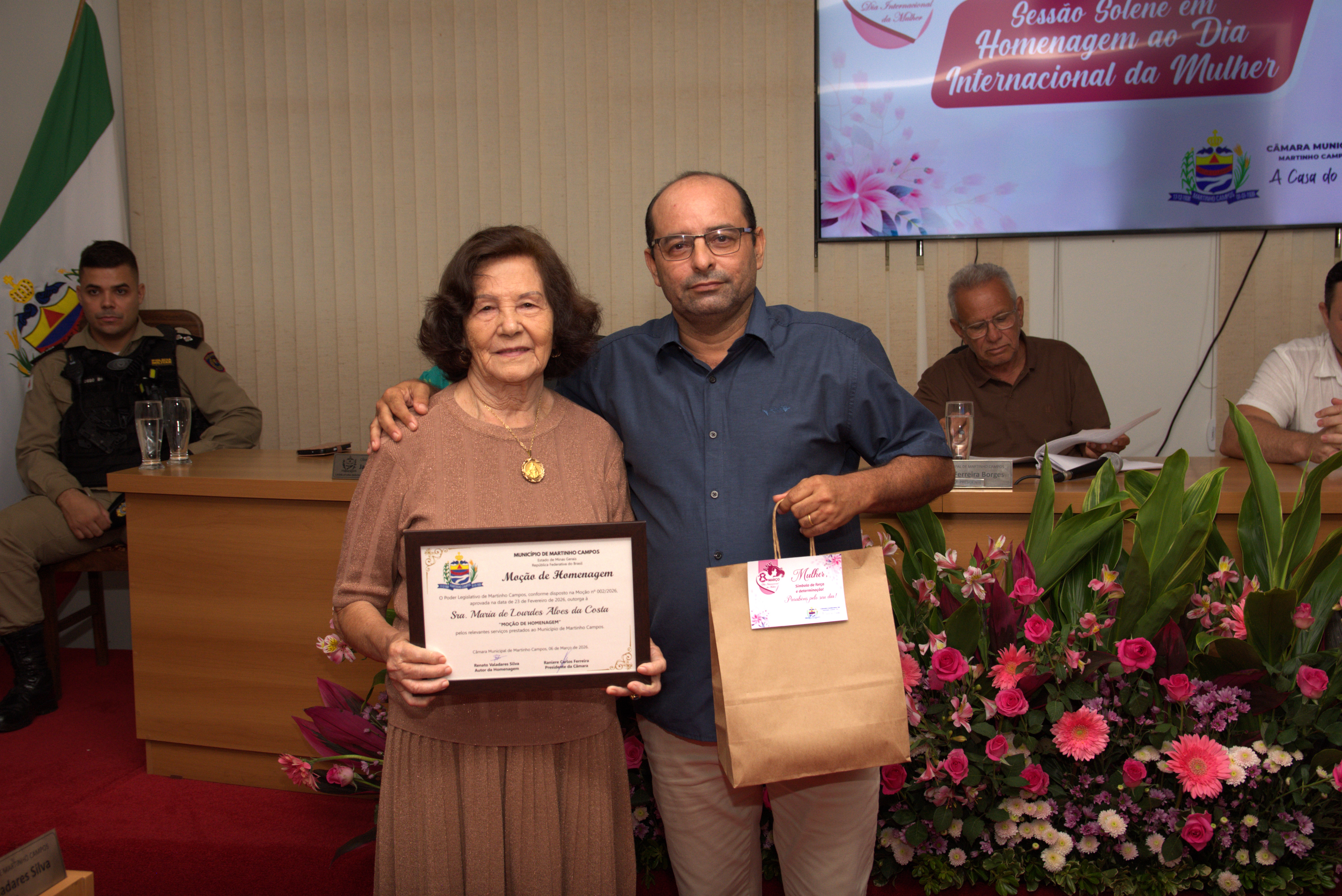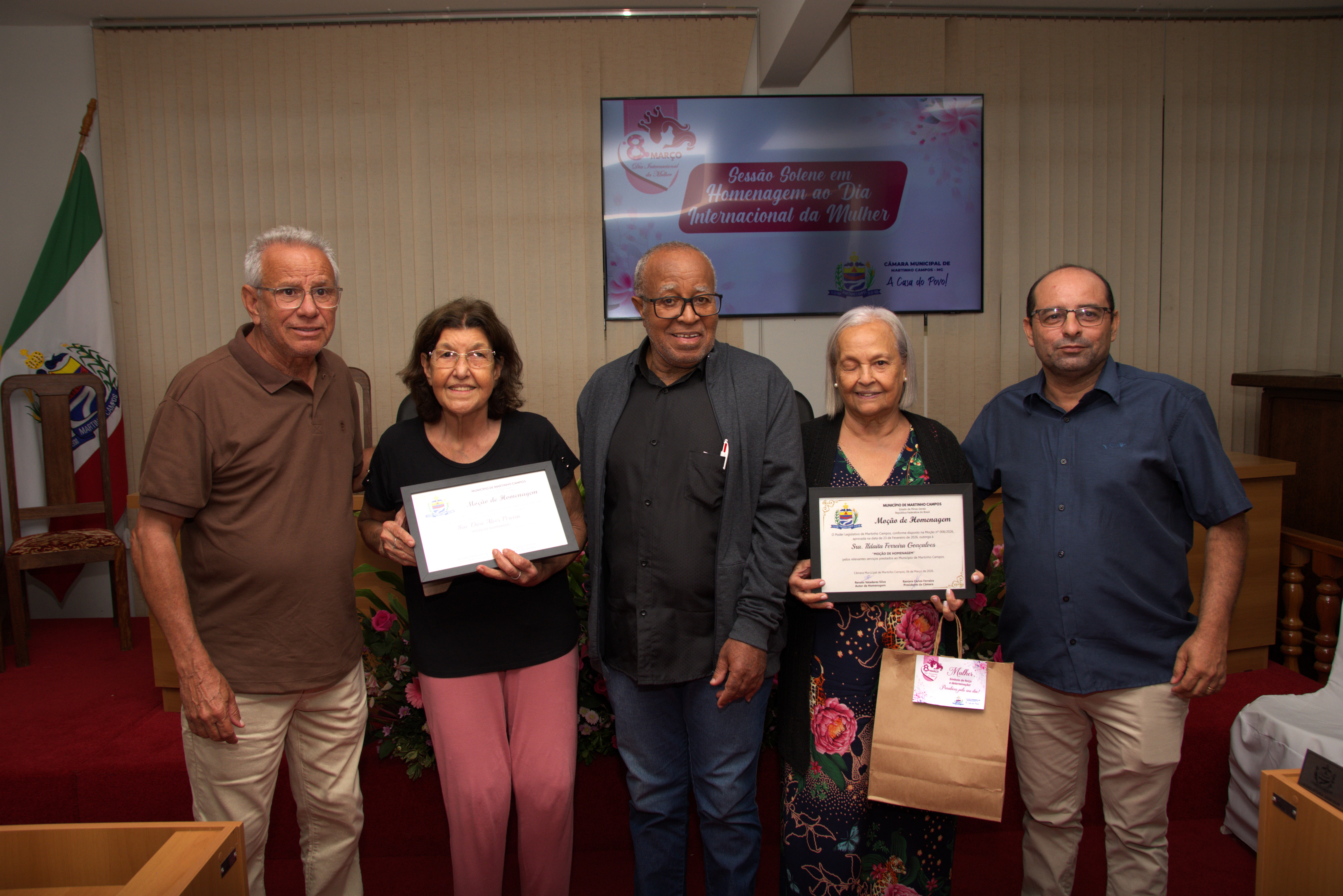 A solenidade também contou com a presença dos vereadores Jachson Gomes da Silva, Simone Maria Teixeira, Ronaldo Ferreira Borges, Renato Valadares Silva e Cléber Luiz Gonçalves, que acompanharam a homenagem e reforçaram a importância do reconhecimento às mulheres do município.