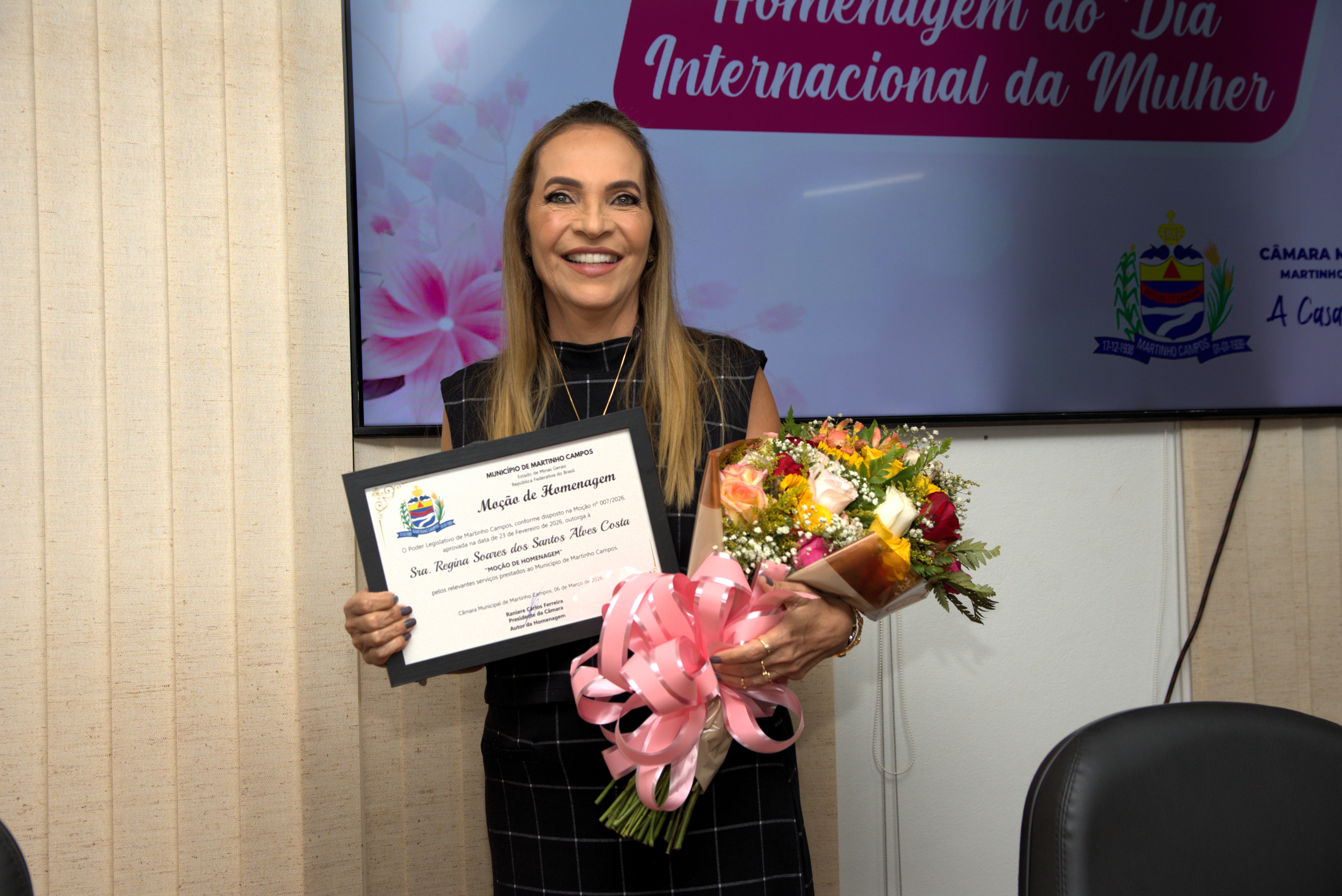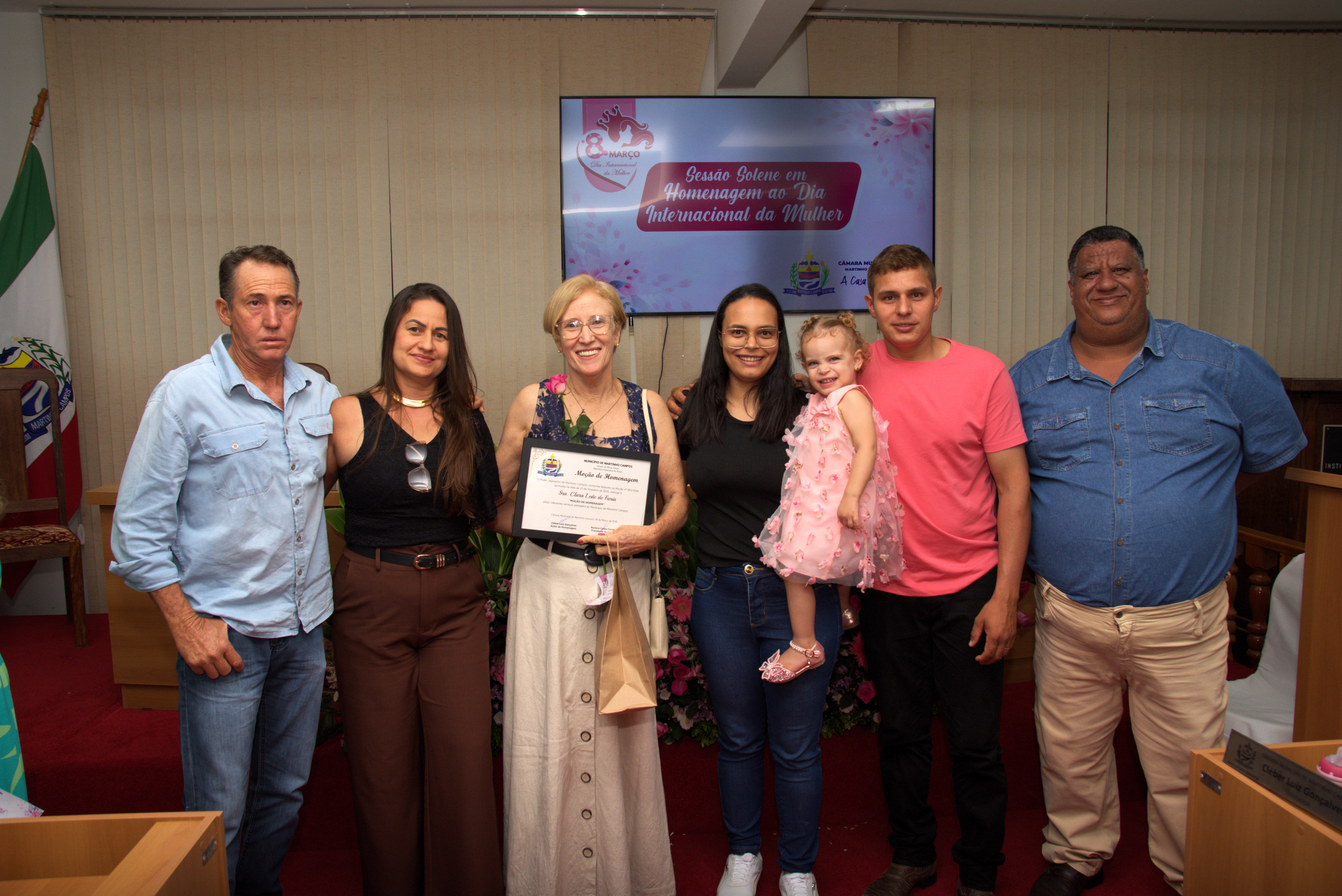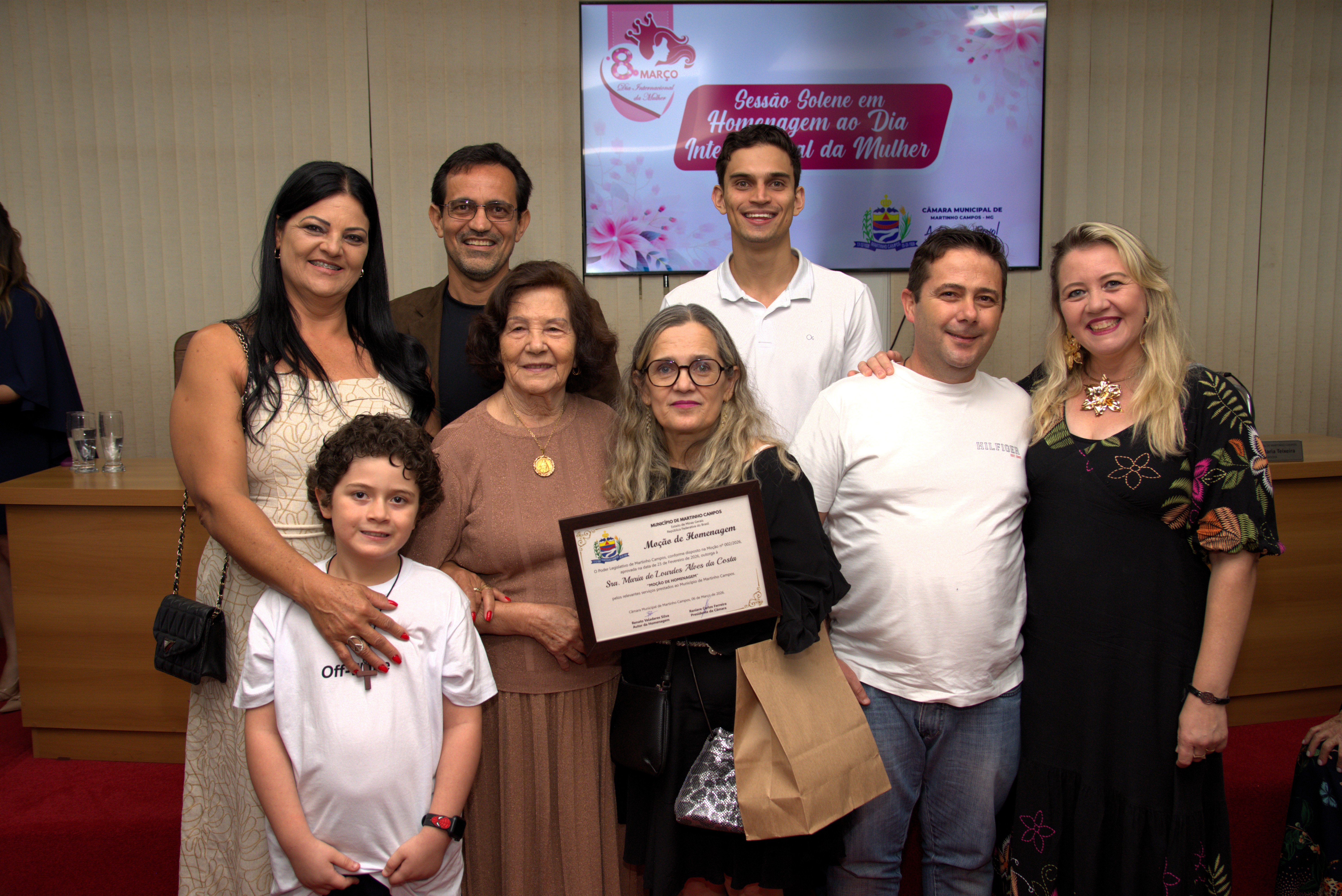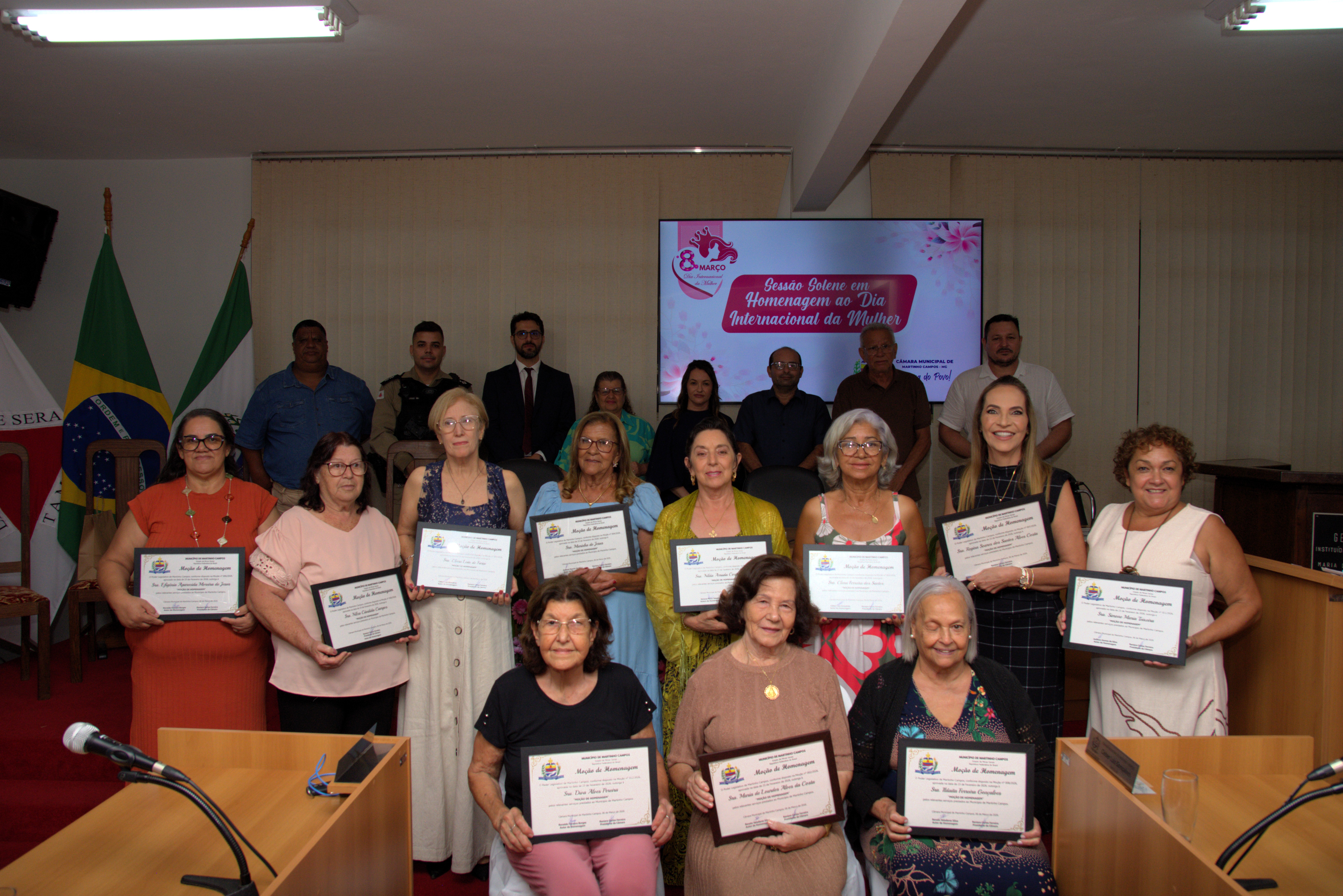 A Câmara Municipal de Martinho Campos realizou, na noite de sexta-feira, 6 de março, uma Sessão Solene em homenagem ao Dia Internacional da Mulher. O evento reuniu autoridades, familiares e moradores em um momento marcado por reconhecimento, emoção e valorização da história de mulheres que contribuem diariamente para o desenvolvimento do município.