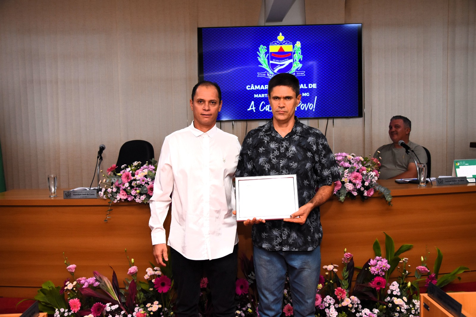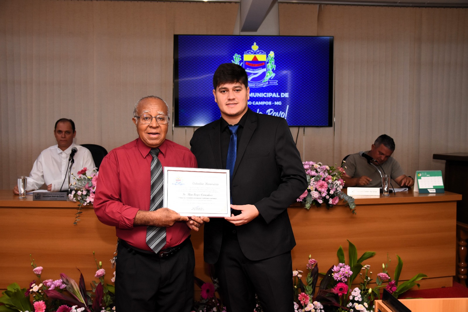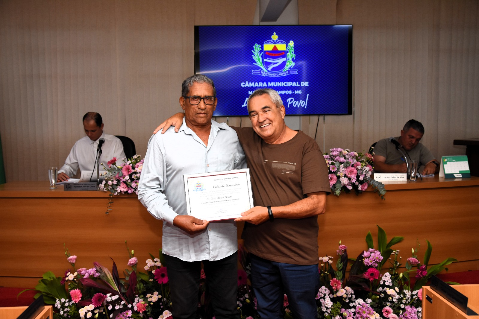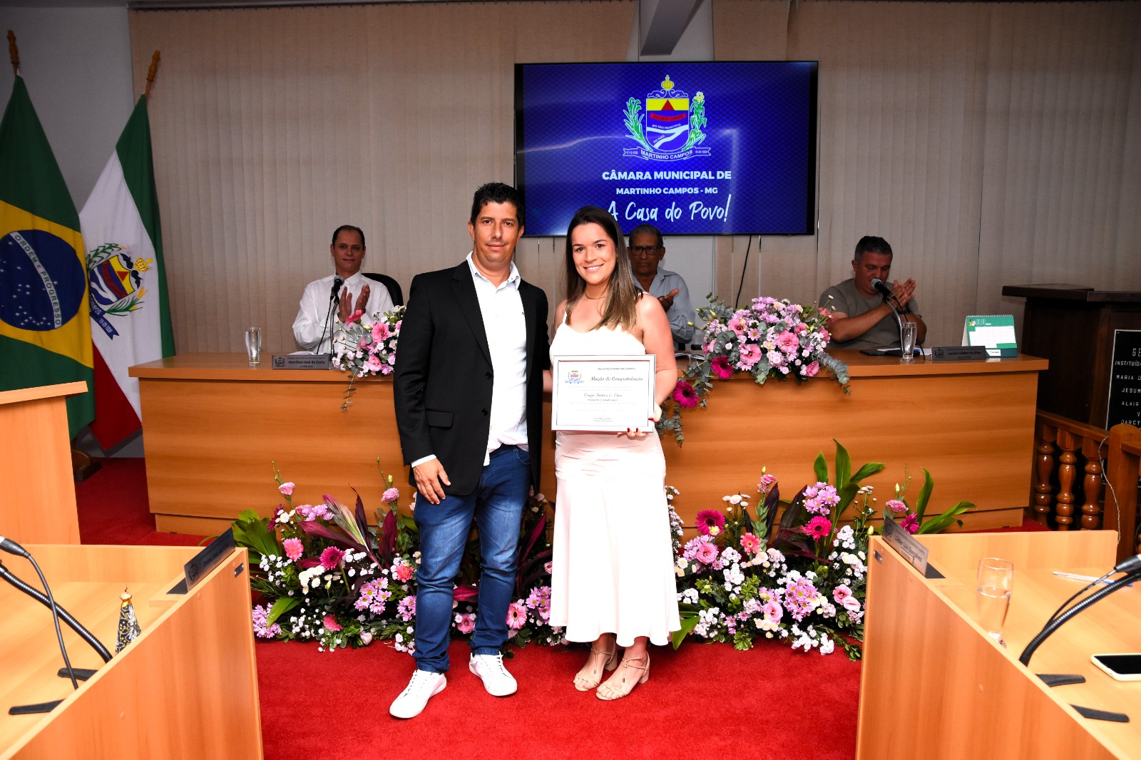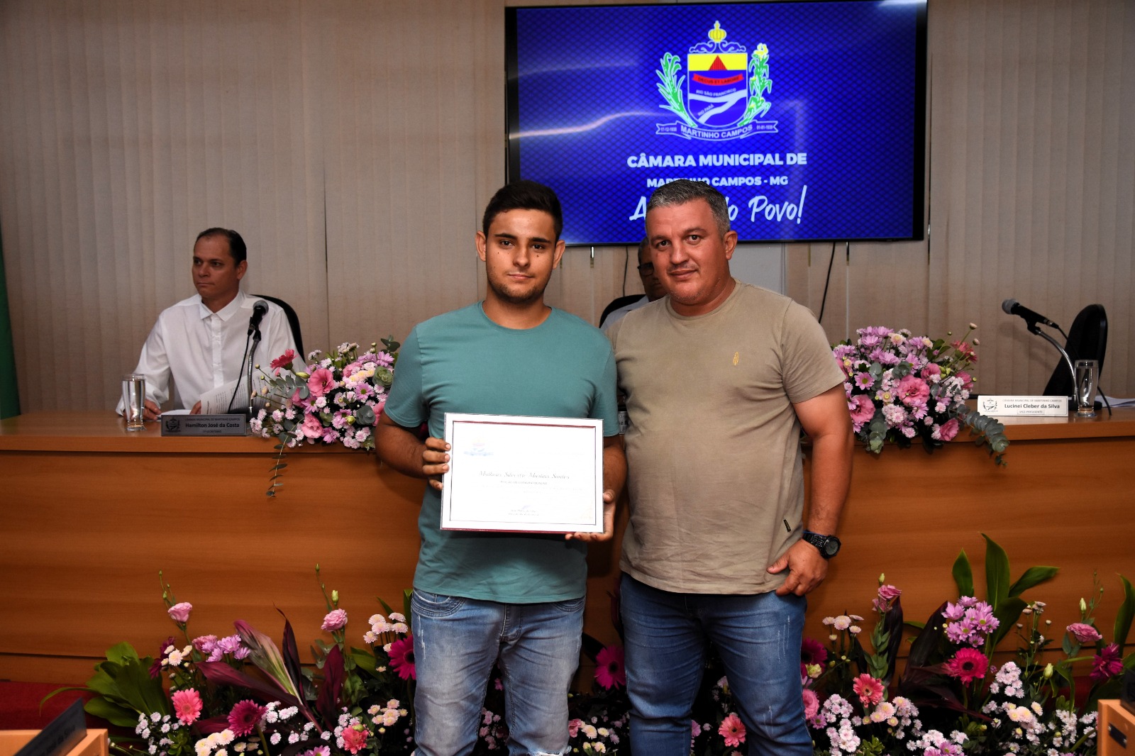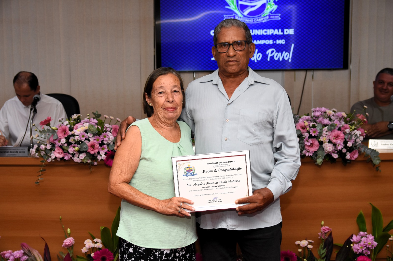 Na noite da última quinta-feira, com muita honra, o Poder Legislativo realizou sessão solene para entrega de moções honrosas e títulos de cidadania honorária do Município de Martinho Campos. Foram homenageados com Moção Honrosa o Grupo Santos e Dias, o SAMU, a Sra. Angelina Maria de Paula Medeiros, a Sra. Jakline Aparecida Lemos Pereira dos Santos, o Sr. Edimilson Aparecido da Silva, o Sr. Rômulo Carlos da Silva, o Sr. Moacir José dos Santos e com o Título de Cidadão Honorário do Município de Martinho Campos o Reverendo Padre Juliano Ribeiro da Costa, a Sra. Patrícia Lane Valadares, o Sr. Alan Roger Gonçalves, o Sr. José Altino Pereira, o Sr. Adonias de Almeida Filho e Sr. Isnei José Garcia Faria. Receberam também moção honrosa, os alunos Gabriel Antônio Pimentel, Maria Fernanda Silva Lamounier, Ana Luíza Pereira dos Santos, Gabriel da Silva Oscar, Matheus Silvestre Martins Santos e Pedro Henrique Pereira dos Santos, pelo brilhante desempenho na 17ª Olimpíada Brasileira de Matemática das Escolas Públicas – OBMEP/IMPA. Vários familiares estiveram presentes para prestigiarem o evento, que foi marcado por discursos emocionados dos homenageados e dos Parlamentares, destacando-se a importância da coletividade, respeito e gratidão àqueles que dedicam seus esforços em prol do desenvolvimento de nossa comunidade.