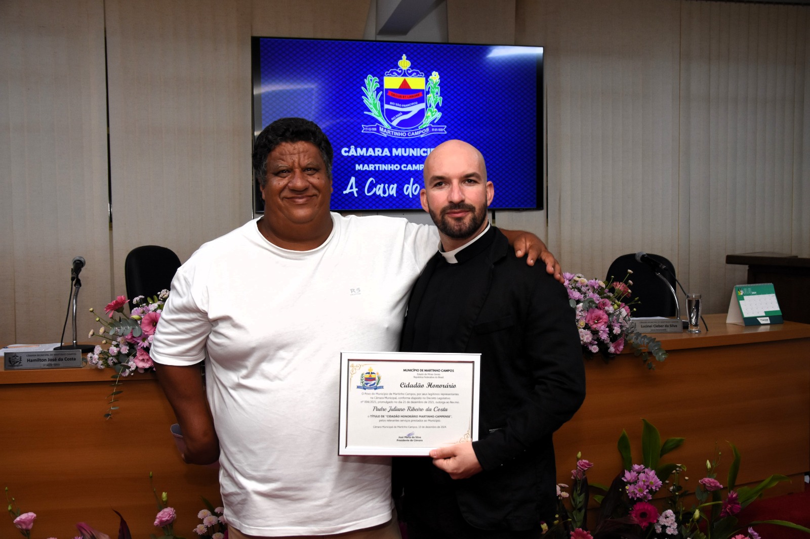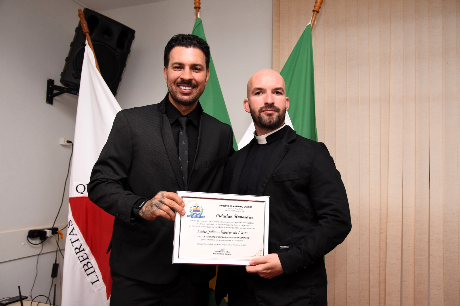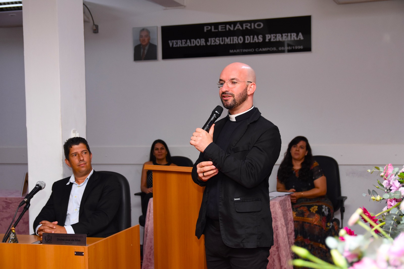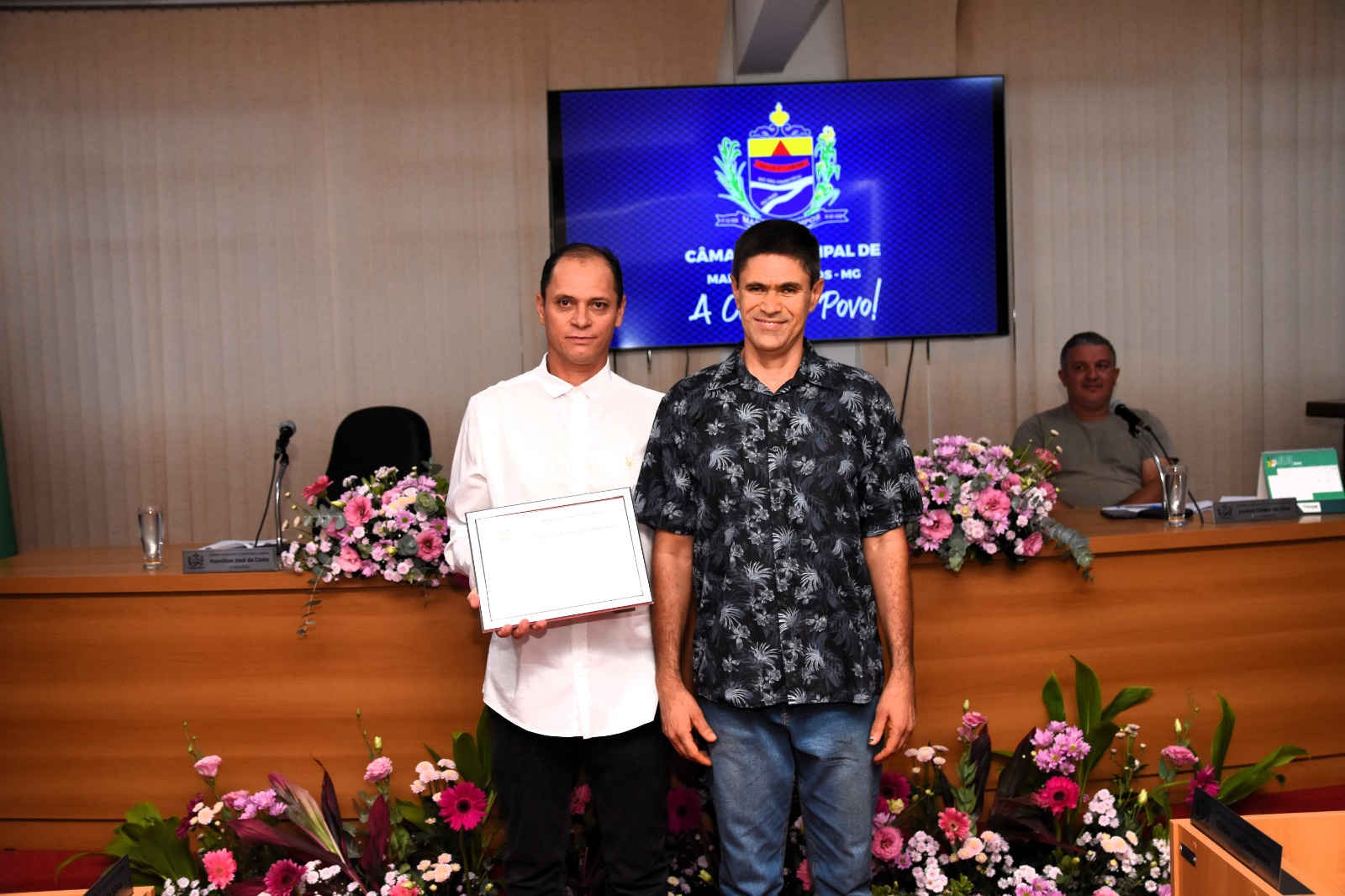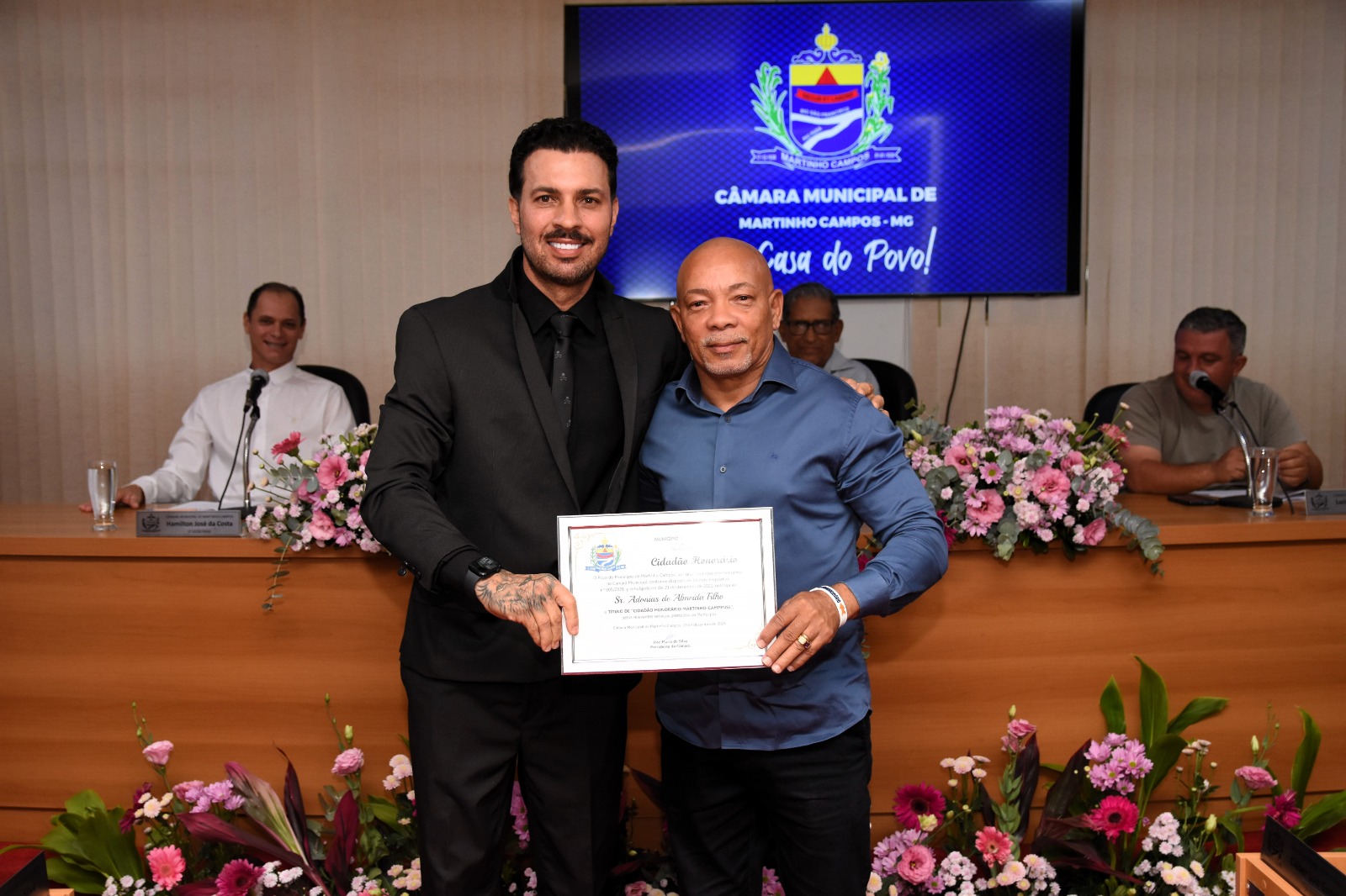 Na noite da última quinta-feira, com muita honra, o Poder Legislativo realizou sessão solene para entrega de moções honrosas e títulos de cidadania honorária do Município de Martinho Campos. Foram homenageados com Moção Honrosa o Grupo Santos e Dias, o SAMU, a Sra. Angelina Maria de Paula Medeiros, a Sra. Jakline Aparecida Lemos Pereira dos Santos, o Sr. Edimilson Aparecido da Silva, o Sr. Rômulo Carlos da Silva, o Sr. Moacir José dos Santos e com o Título de Cidadão Honorário do Município de Martinho Campos o Reverendo Padre Juliano Ribeiro da Costa, a Sra. Patrícia Lane Valadares, o Sr. Alan Roger Gonçalves, o Sr. José Altino Pereira, o Sr. Adonias de Almeida Filho e Sr. Isnei José Garcia Faria. Receberam também moção honrosa, os alunos Gabriel Antônio Pimentel, Maria Fernanda Silva Lamounier, Ana Luíza Pereira dos Santos, Gabriel da Silva Oscar, Matheus Silvestre Martins Santos e Pedro Henrique Pereira dos Santos, pelo brilhante desempenho na 17ª Olimpíada Brasileira de Matemática das Escolas Públicas – OBMEP/IMPA. Vários familiares estiveram presentes para prestigiarem o evento, que foi marcado por discursos emocionados dos homenageados e dos Parlamentares, destacando-se a importância da coletividade, respeito e gratidão àqueles que dedicam seus esforços em prol do desenvolvimento de nossa comunidade.