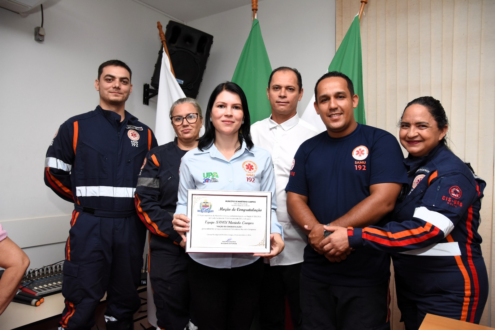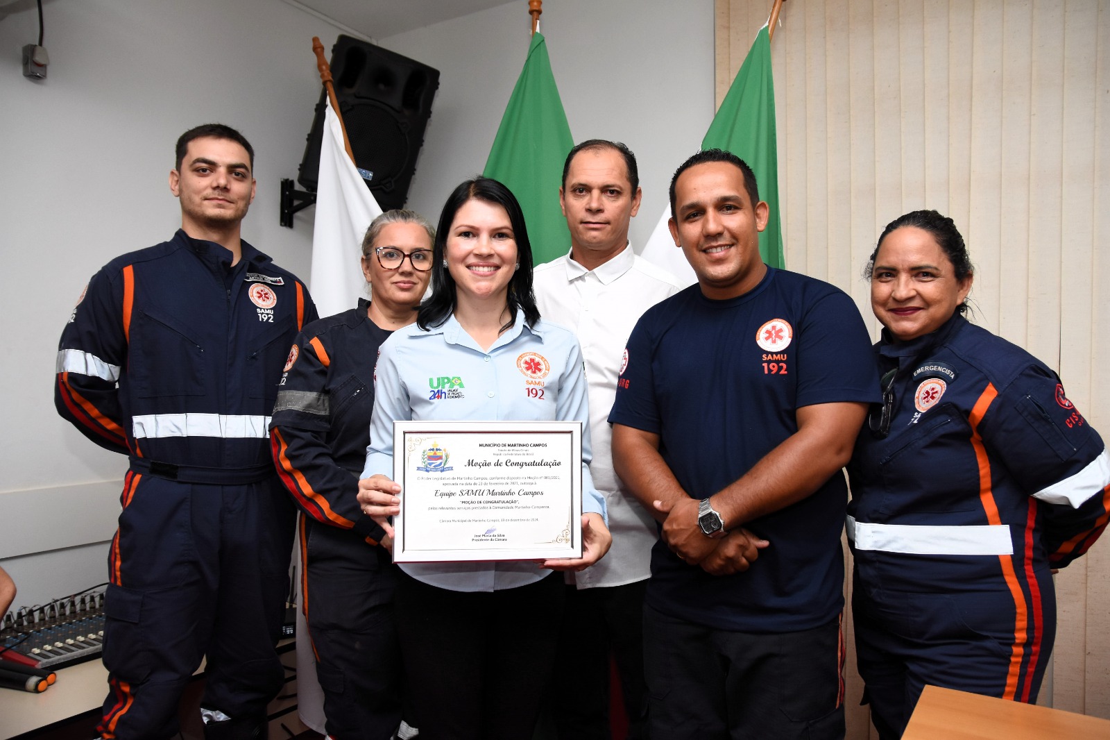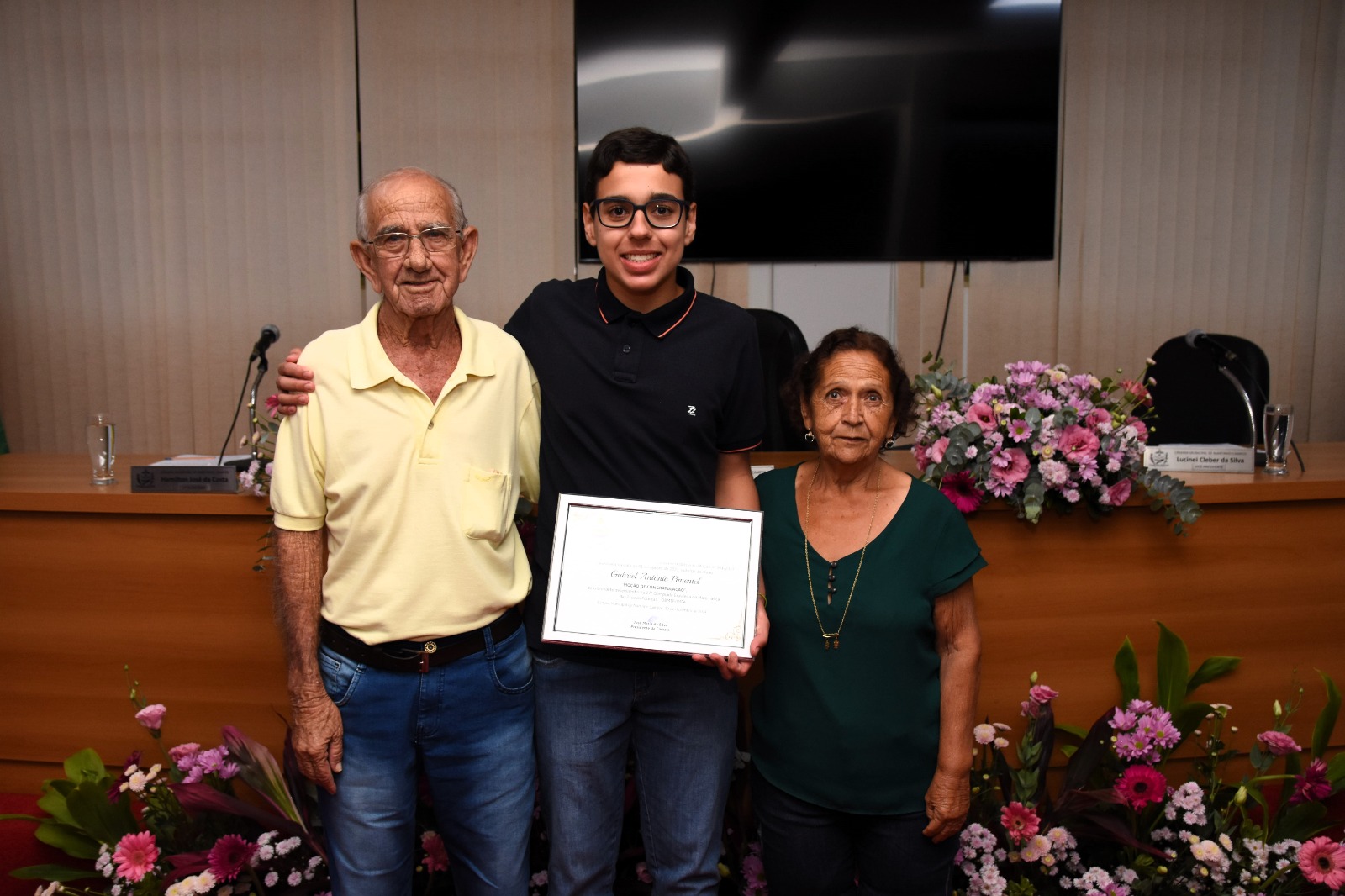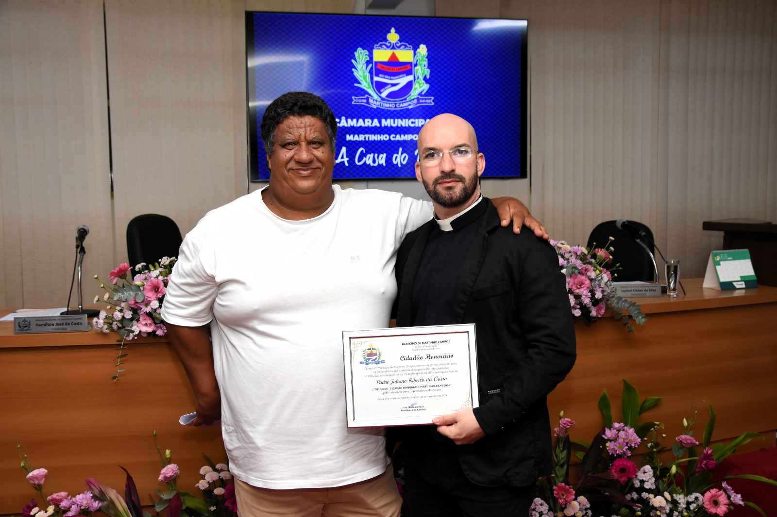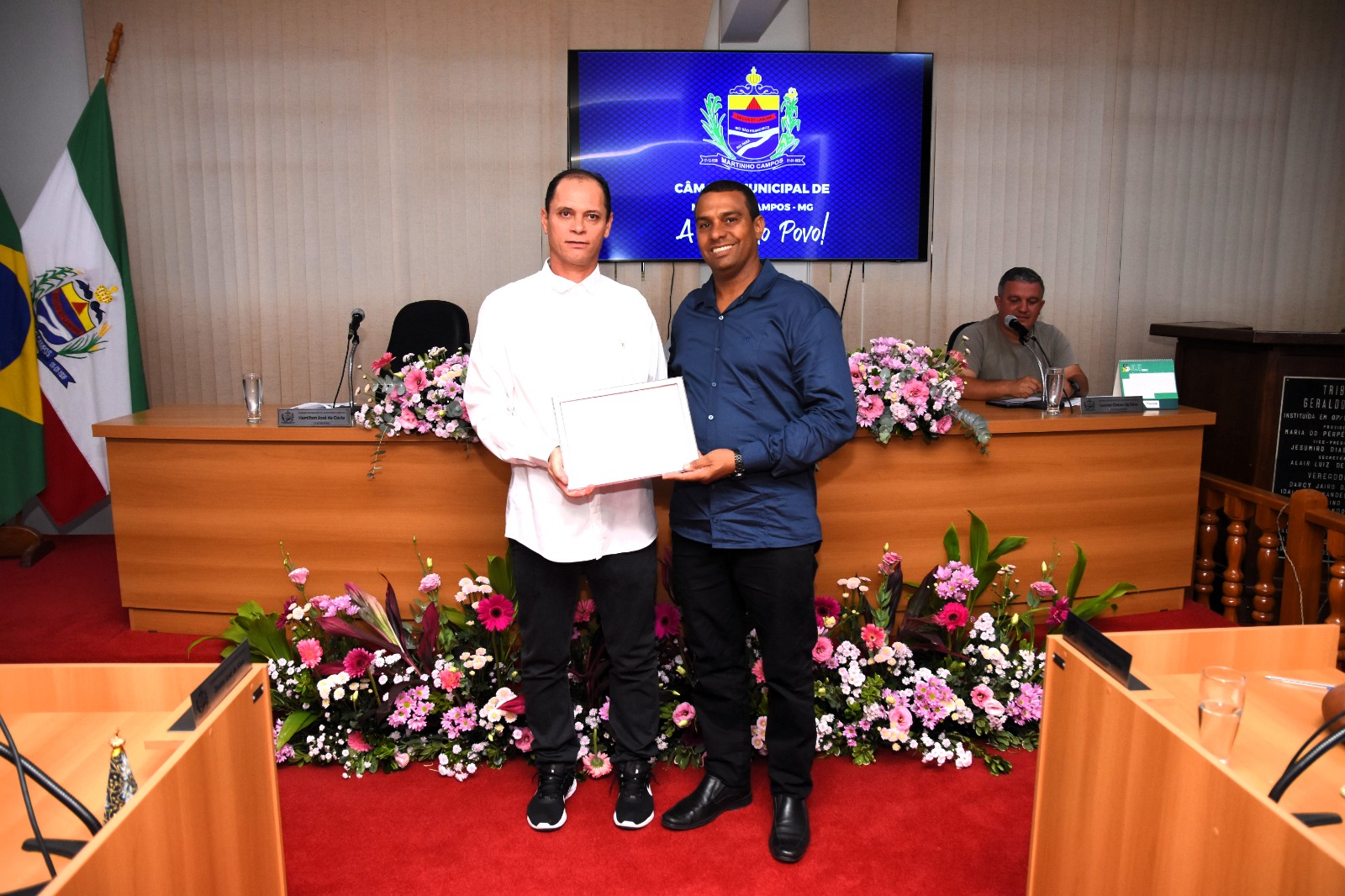 Na noite da última quinta-feira, com muita honra, o Poder Legislativo realizou sessão solene para entrega de moções honrosas e títulos de cidadania honorária do Município de Martinho Campos. Foram homenageados com Moção Honrosa o Grupo Santos e Dias, o SAMU, a Sra. Angelina Maria de Paula Medeiros, a Sra. Jakline Aparecida Lemos Pereira dos Santos, o Sr. Edimilson Aparecido da Silva, o Sr. Rômulo Carlos da Silva, o Sr. Moacir José dos Santos e com o Título de Cidadão Honorário do Município de Martinho Campos o Reverendo Padre Juliano Ribeiro da Costa, a Sra. Patrícia Lane Valadares, o Sr. Alan Roger Gonçalves, o Sr. José Altino Pereira, o Sr. Adonias de Almeida Filho e Sr. Isnei José Garcia Faria. Receberam também moção honrosa, os alunos Gabriel Antônio Pimentel, Maria Fernanda Silva Lamounier, Ana Luíza Pereira dos Santos, Gabriel da Silva Oscar, Matheus Silvestre Martins Santos e Pedro Henrique Pereira dos Santos, pelo brilhante desempenho na 17ª Olimpíada Brasileira de Matemática das Escolas Públicas – OBMEP/IMPA. Vários familiares estiveram presentes para prestigiarem o evento, que foi marcado por discursos emocionados dos homenageados e dos Parlamentares, destacando-se a importância da coletividade, respeito e gratidão àqueles que dedicam seus esforços em prol do desenvolvimento de nossa comunidade.